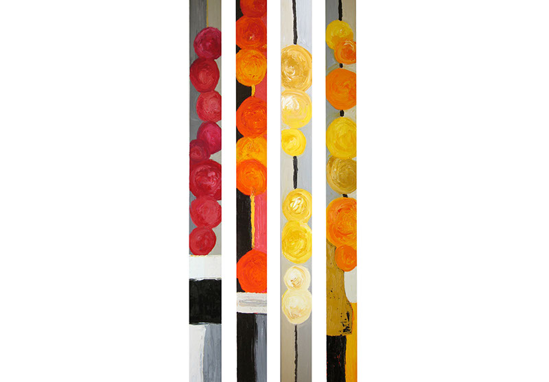 CD-AZ, políptico 4 piezas, óleo sobre madera, 180 x 15 x 10 cm cada uno