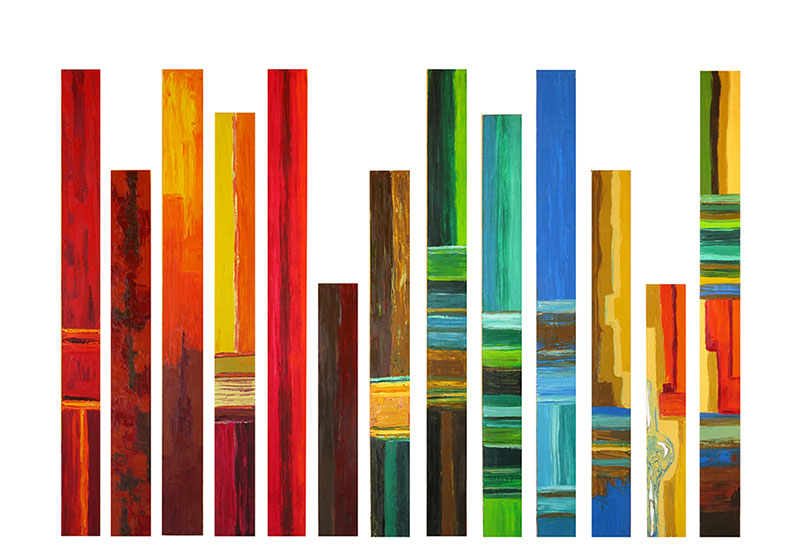 CD-AO, óleo sobre madera, 180 x 15 x 10 cm c/u
