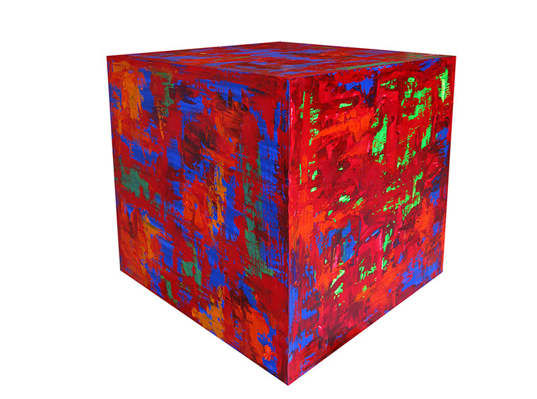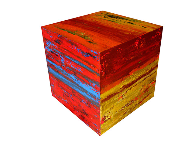 66/69/66 VI, óleo sobre madera, 50 x 50 x 50 cm