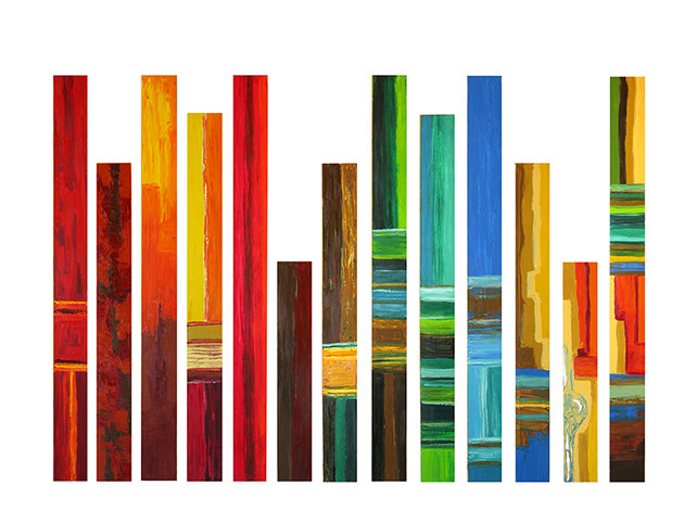 CD-AO, óleo sobre madera, 180 x 15 x 10 cm c/u