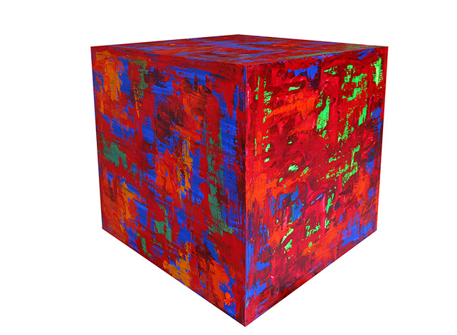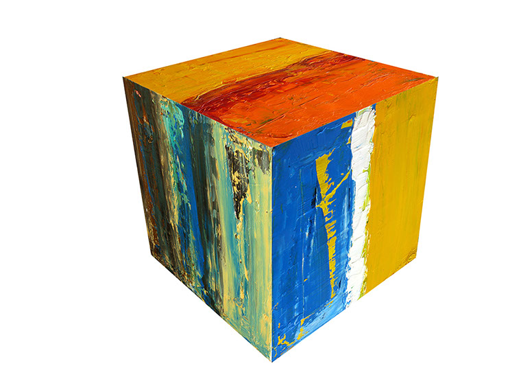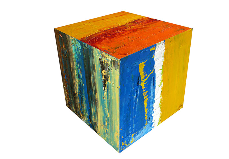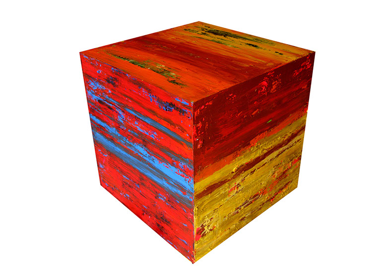 66/69/66 VI, óleo sobre madera, 50 x 50 x 50 cm