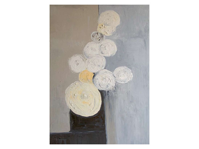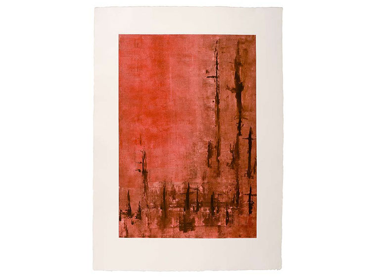 Con ellos construye un montaje alusivo a la mesa donde los comensales disfrutan y comparten la experiencia culinaria. Y como en toda buena mesa no puede faltar la presencia del vino. Edurne complementa sus fantasías gastronómicas con una serie de monotipos en los que predomina el color rojo intenso. Los viñedos Chateau Fonchereau en Francia han sido motivo de la inspiración para su creación.