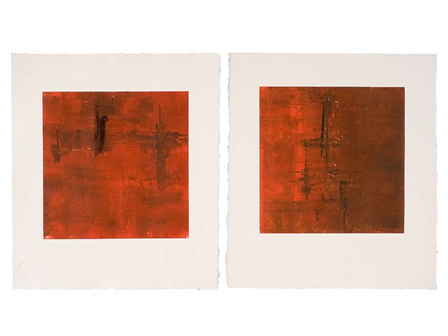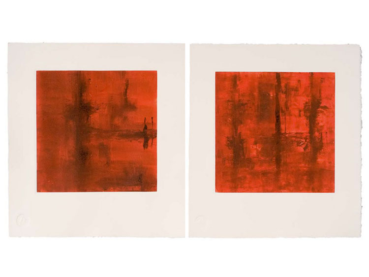 Izq: Eclat du vin / Der: Reflect du lavoir, óleo sobre papel, 39 x 36 cm c/u