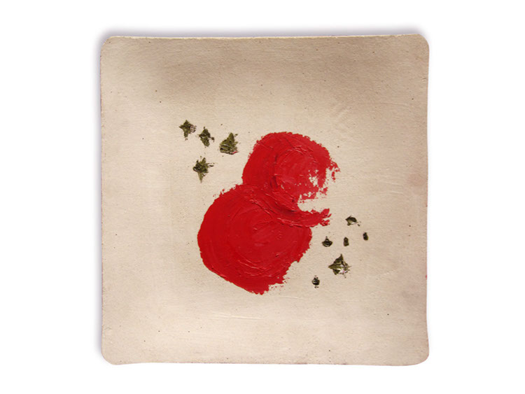 Constelación de remolacha, óleo sobre cerámica oaxaqueña a la alta temperatura, 40 x 40 cm
