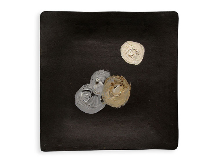 Constelación cremosa, óleo sobre cerámica oaxaqueña a la alta temperatura, 35 cm de diámetro