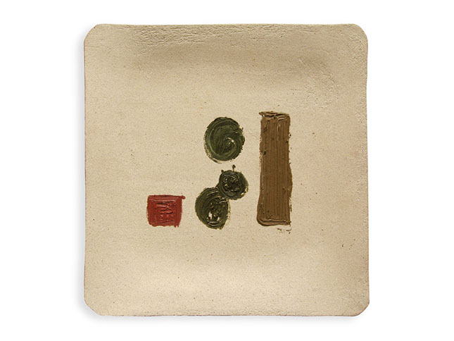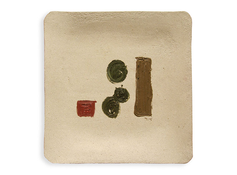 Servicio a la carta, óleo sobre cerámica oaxaqueña a la alta temperatura, 40 x 40 cm