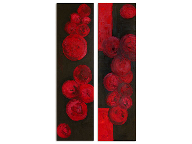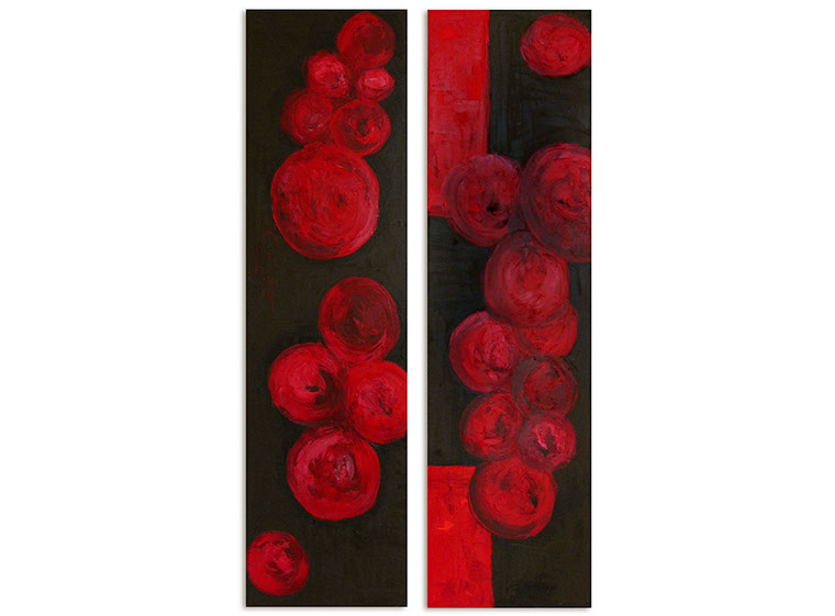 Esferificaciones de remolacha, díptico, óleo sobre tela, 180 x 120 cm