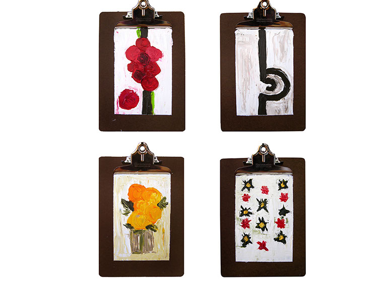 Izq: Le miroir du ruisseau / Der: La lumière du vin, óleo sobre papel, 39 x 36 cm c/u
